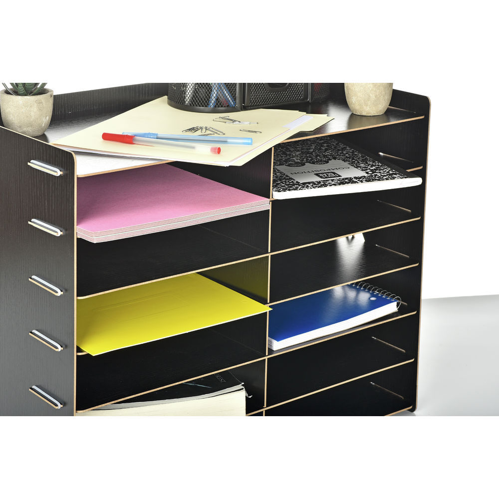 Adir Office 12-Compartment Wood Paper Literature File Organizer, Black