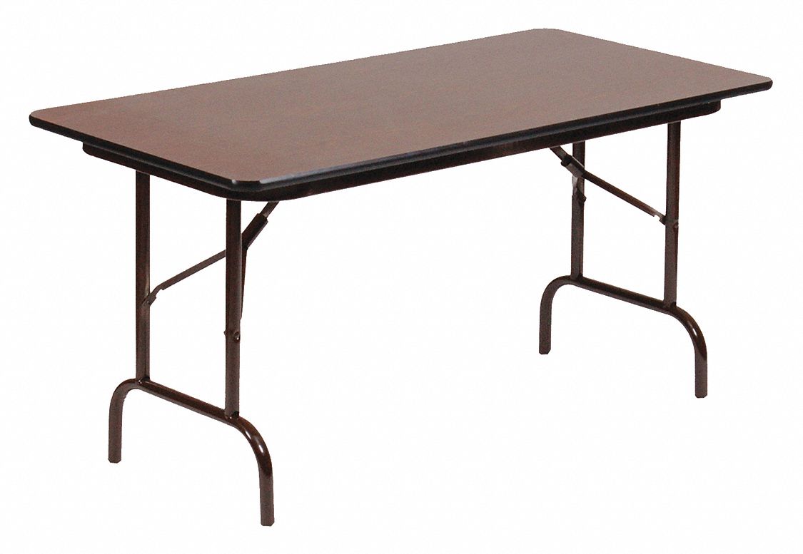 CORRELL Folding Table with Melamine Top is scratch-resistant for durability. -5/8" particleboard core and protective bull-nose edging. 1-5/8" one-piece steel apron. 18-gauge steel folding legs with mar-proof plastic foot caps.