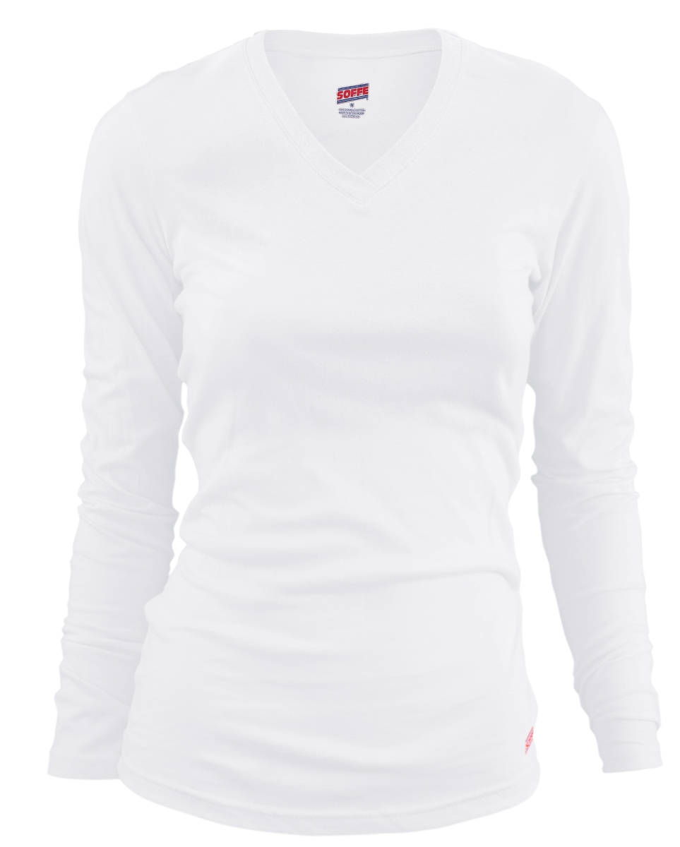 Soffe 242V123XLG Juniors Combed Cotton Long Sleeve V-Neck Tee, Whiteb - Extra Large