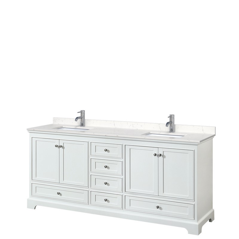 Deborah 80 Inch Double Bathroom Vanity in White, Light-Vein Carrara Cultured Marble Countertop, Undermount Square Sinks, No Mirrors