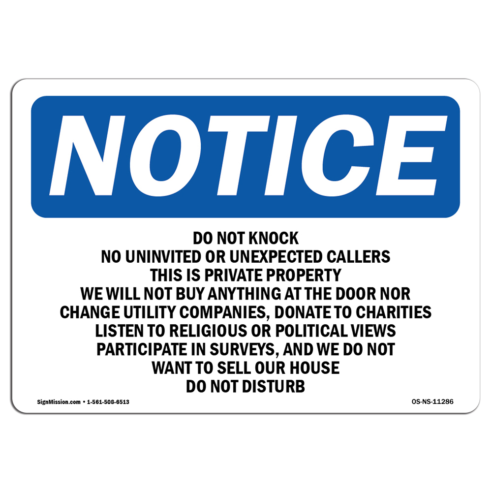 OSHA Notice Sign - Do Not Knock No Uninvited Or Unexpected | Aluminum Sign | Protect Your Business, Work Site, Warehouse & Shop Area | Made in the USA, 10" X 7" Aluminum