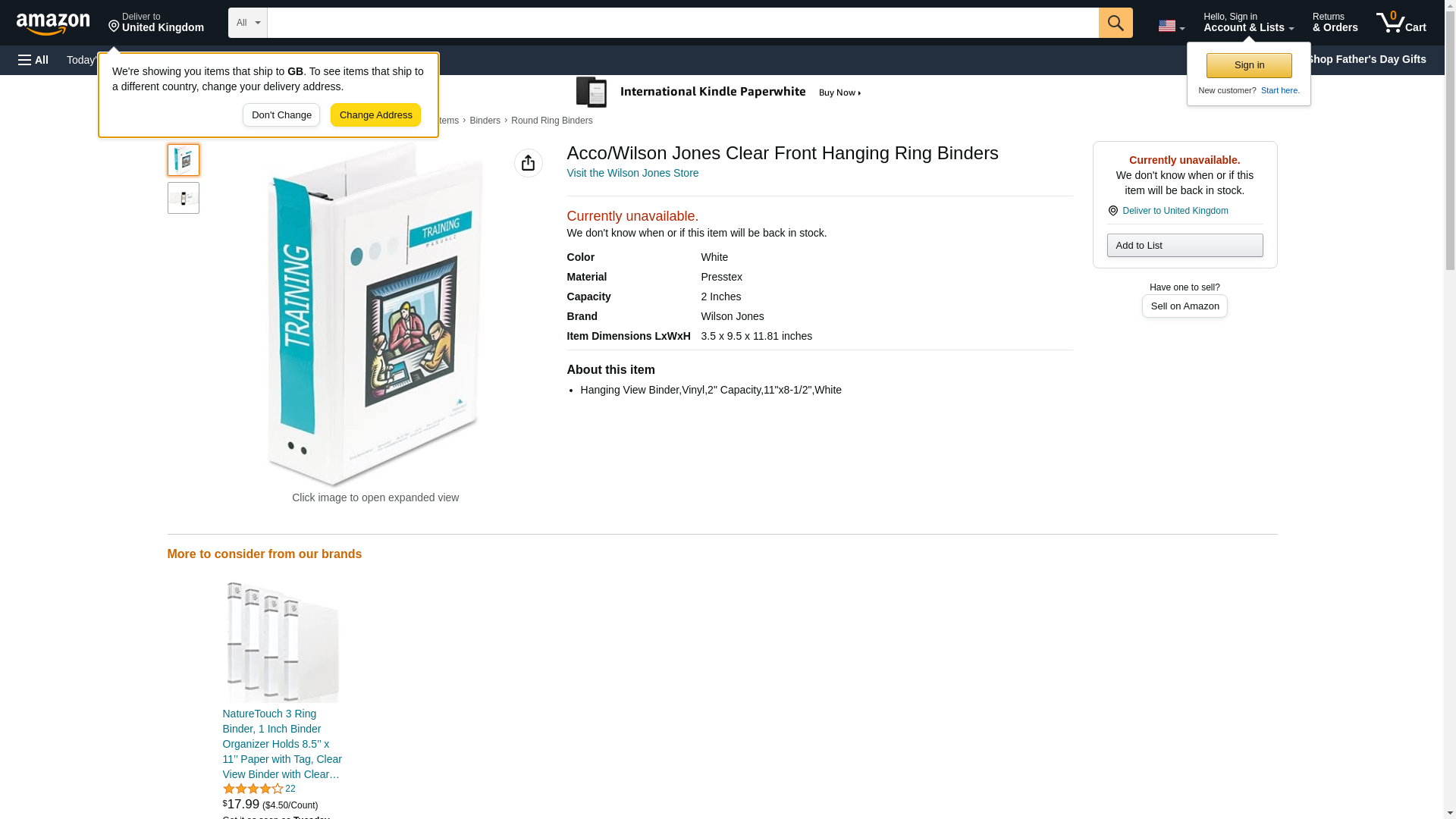 Acco/Wilson Jones Clear Front Hanging Ring Binders