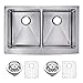 Water Creation SSSG-AD-3322C 33" X 22" 15 mm Corner Radius 50/50 Double Bowl Stainless Steel Apron Front Kitchen Sink with Drain and Strainer
