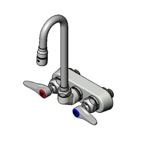 T&S Brass 4" Wall Mount Work board Mixing Faucet, 4" Wrist Action Handles, 3" Swivel Gooseneck & 1/2" NPT Male Inlets.