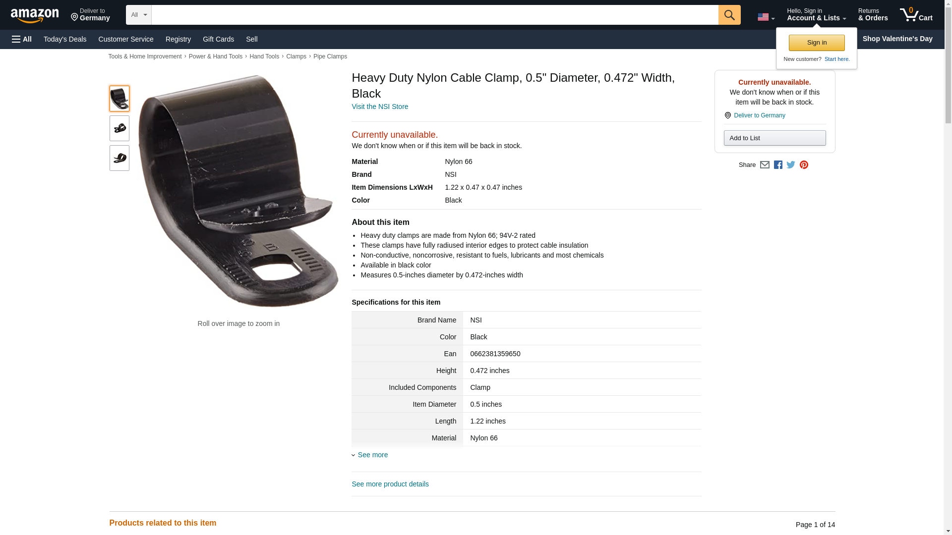 NSI NCH-500-0 Heavy Duty Nylon Cable Clamp, 0.5" Diameter, 0.472" Width, Black