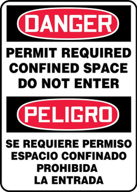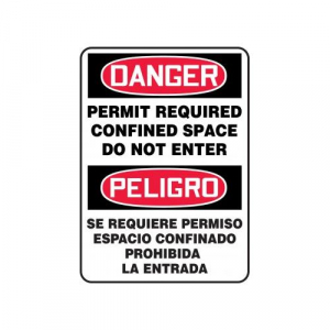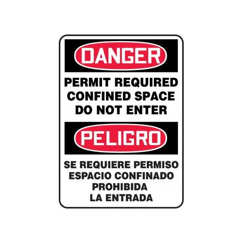 Accuform SBMCSP058VP Plastic Spanish Bilingual Sign, "DANGER PERMIT REQUIRED CONFINED SPACE DO NOT ENTER/PELIGRO SE REQUIERE PERMISO ESPACIO CONFINADO PROHIBIDA LA ENTRADA", 14" Length x 10" Width x 0.055" Thickness, Red/Black on White