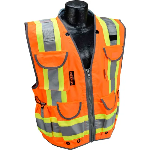 - HEAVY-DUTY FUNCTIONAL DESIGN: Made with heavyweight Poly fabric in front, a heavy-duty zipper closure, and reinforcement edge binding, the SV55 surveyor safety vest is built to last. The 3M 2" Glass Bead Reflective Tape is applied with heat transfer to ensure that stitching won't come loose. Rugged Oxford material supports extra weight carried in cargo pockets.