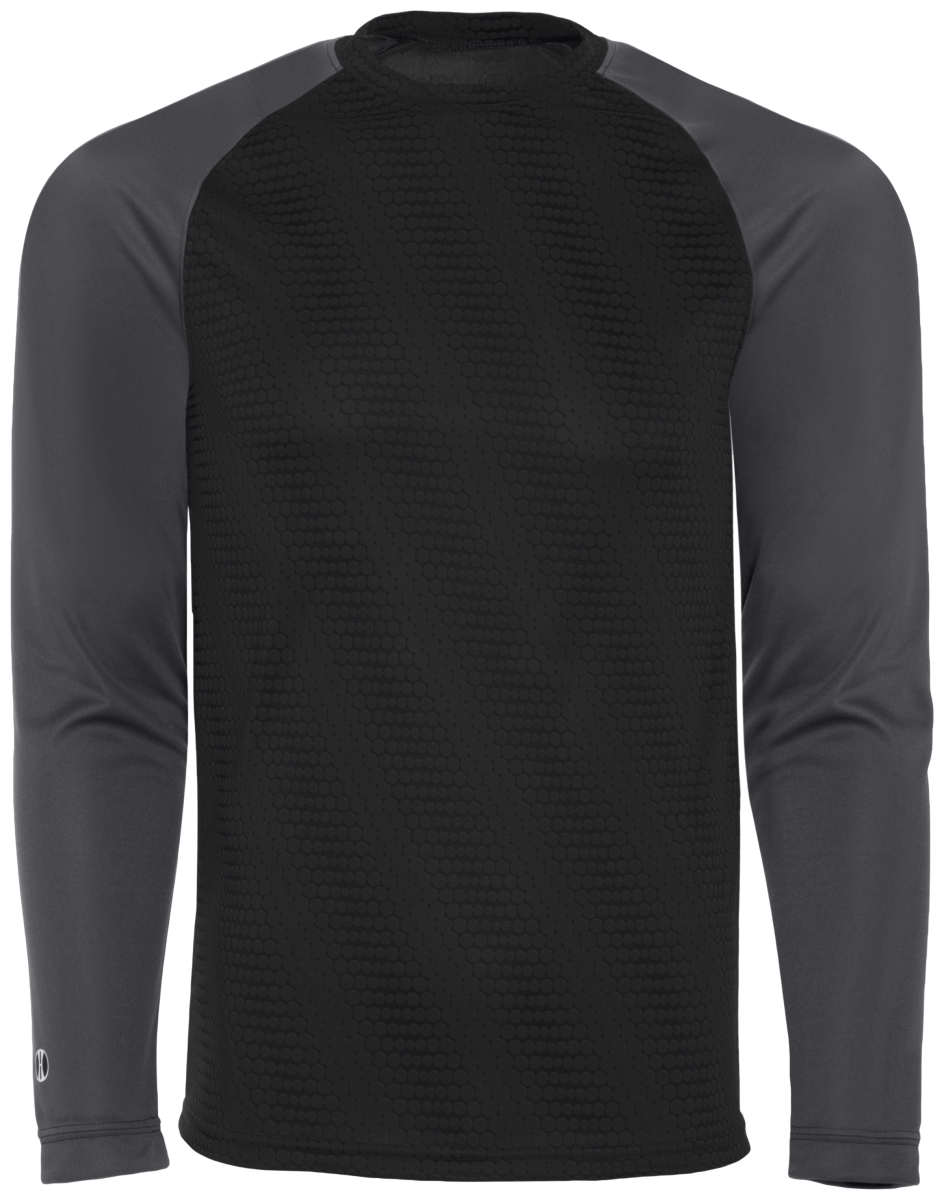 Holloway 222211.D86.L Youth Long Sleeve Torpedo Shirt, Black & Carbon - Large