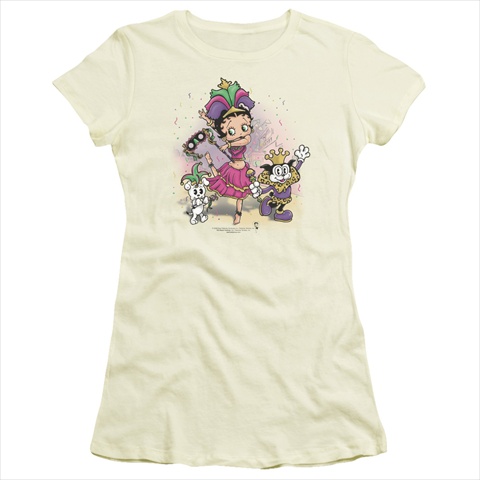Trevco Boop-Celebration - Short Sleeve Junior Sheer Tee - Cream, Small