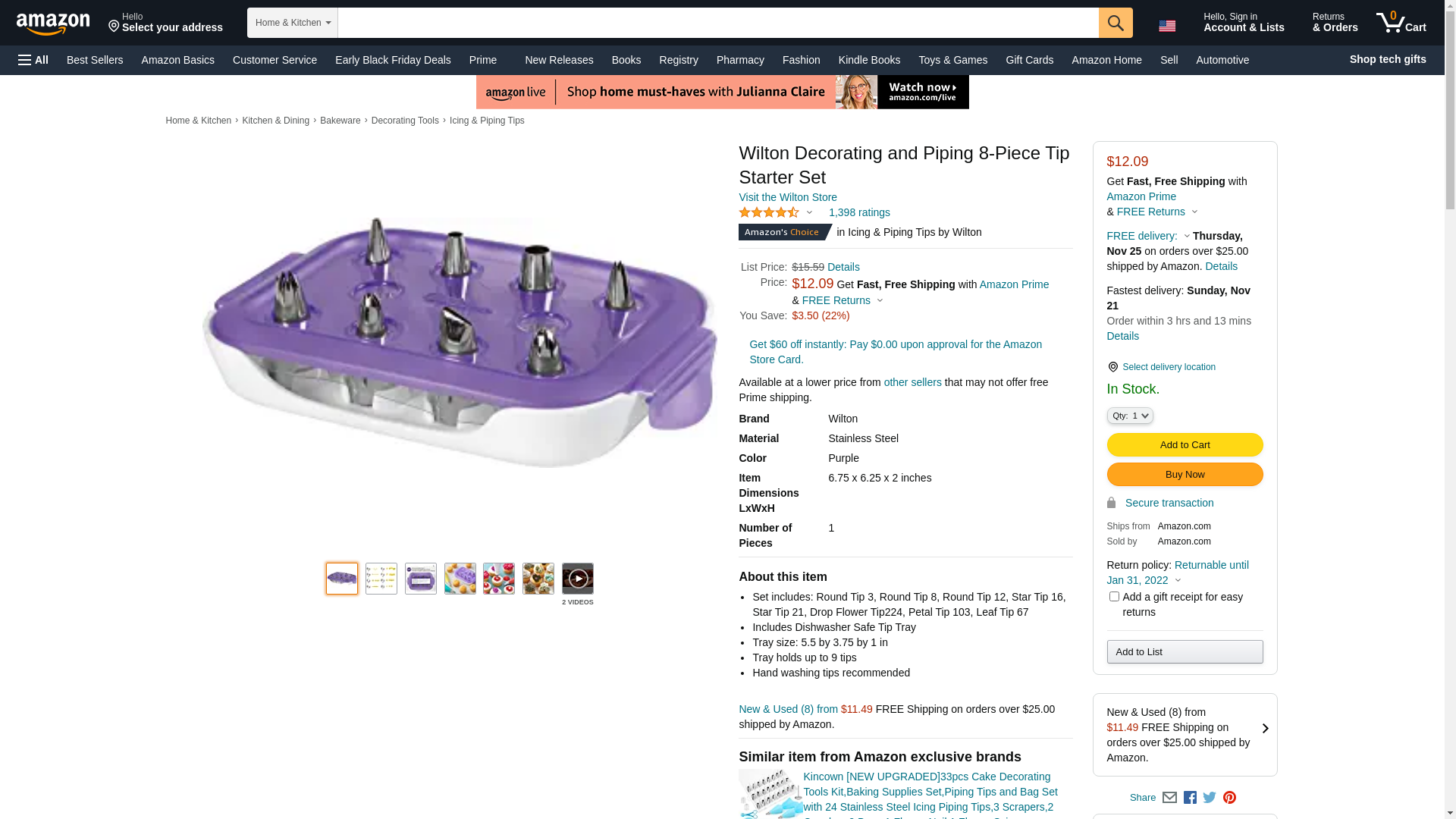 | Feature | Set includes: Round Tip 3, Round Tip 8, Round Tip 12, Star Tip 16, Star Tip 21, Drop Flower Tip224, Petal Tip 103, Leaf Tip 67 |