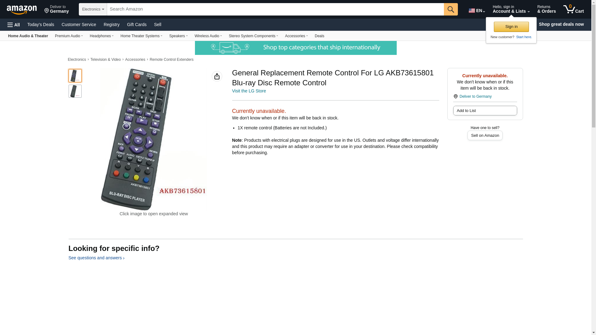 General Replacement Remote Control For LG AKB73615801 Blu-ray Disc Remote Control