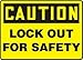 <BR>Lockout/Tagout Safety Signs. CAUTION LOCKOUT FOR SAFETY. 7" x 10" Adhesive Vinyl Sign<BR>
