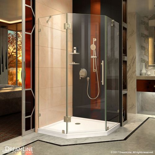 Lots of savings available when you buy the DreamLine Prism Lux 42" x 74 3/4" Fully Frameless Neo-Angle Shower Enclosure in Brushed Nickel with White Base - DL-6053-06 online - customers love our home improvement website.