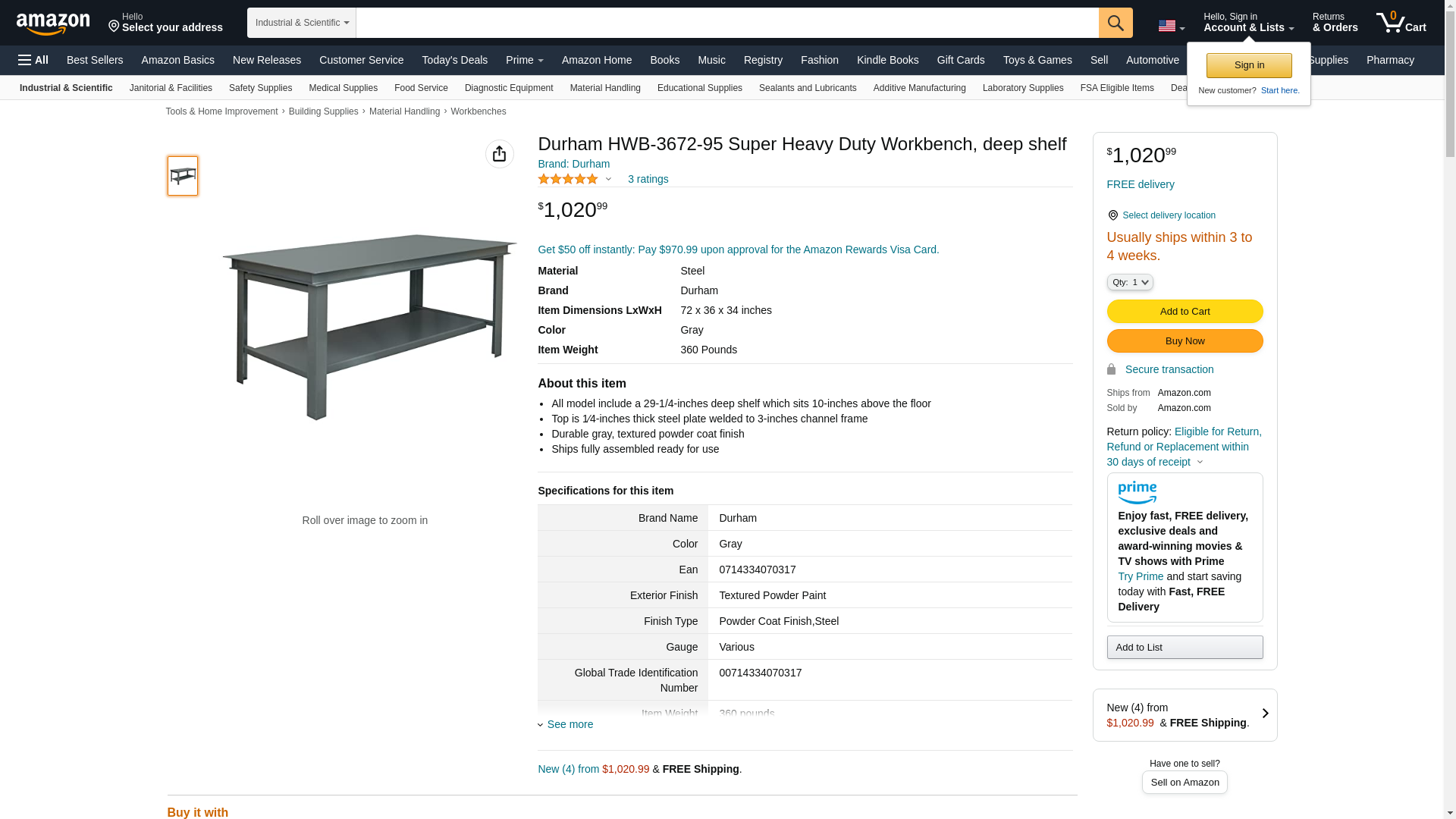 ![]() Global Industrial | WBB170016 | 1 | Ships in 14 Business Days | 1 | 1 @ $908.00 |