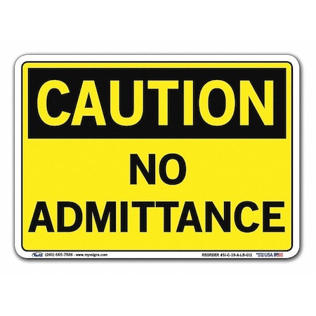 Vestil SI-C-19-A-LB-011 NO ADMITTANCE Caution Label, Vinyl, 0.011" Overall Size, 10.5" W x 7.5" H