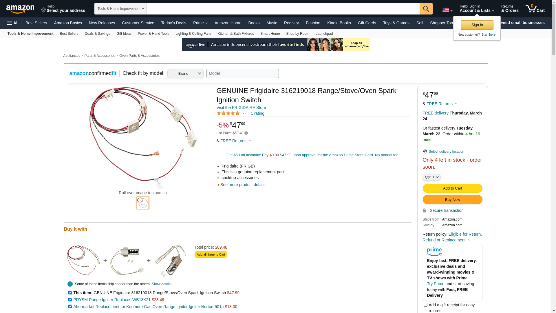 GENUINE Frigidaire 316219018 Range/Stove/Oven Spark Ignition Switch