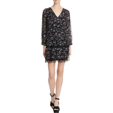 Joie Womens Auggie Floral Print Lace Trim Casual Dress