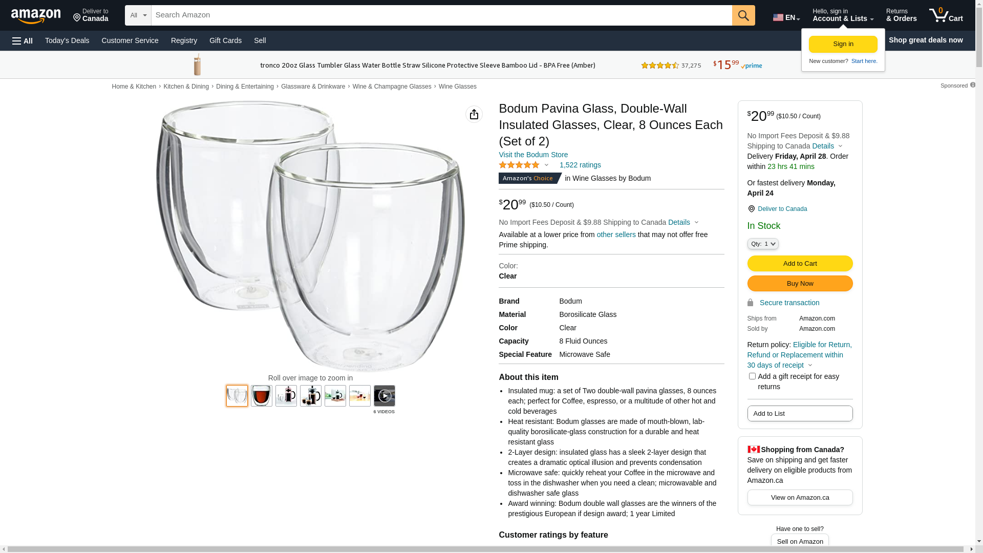 | Feature | Insulated mug: a set of two double-wall pavina glasses, 8 ounces each; perfect for Coffee, Espresso, or a multitude of other hot and cold beverages |
