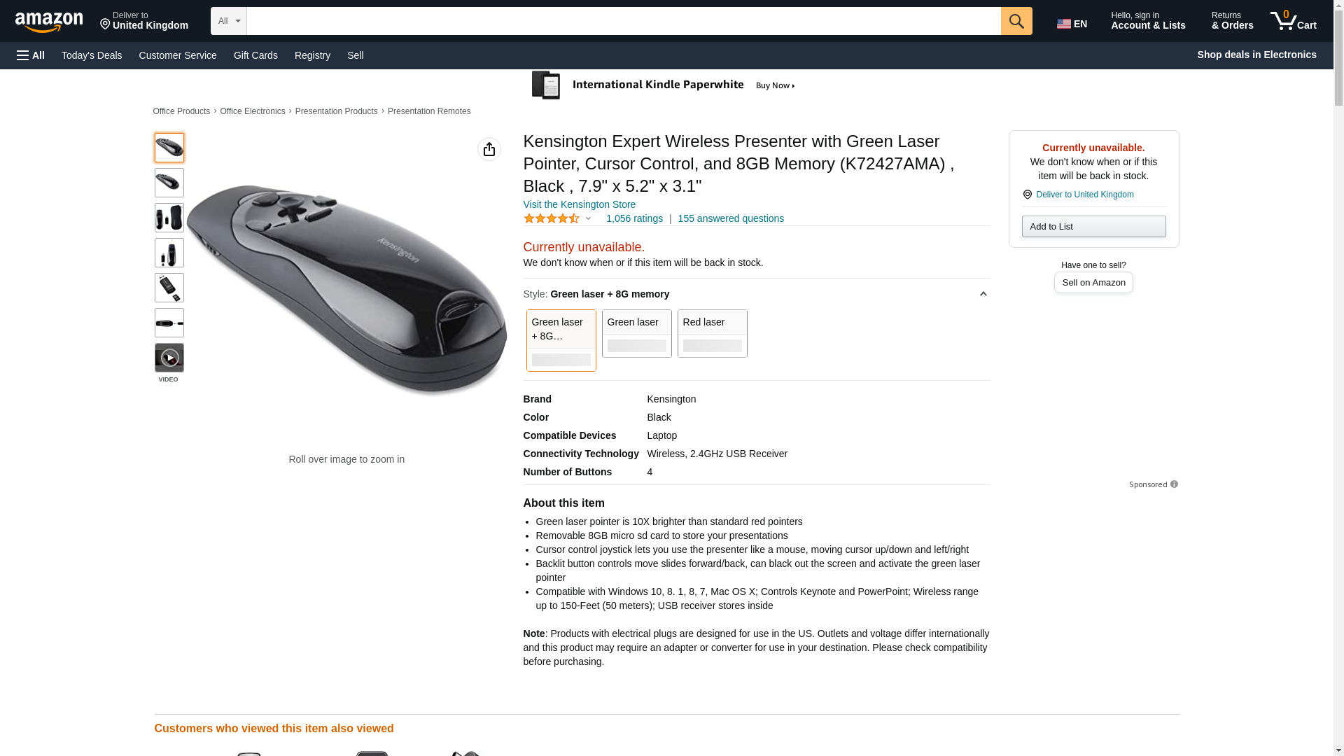 Kensington Expert Wireless Presenter with Green Laser Pointer, Cursor Control, and 8GB Memory (K72427AMA) , Black , 7.9" x 5.2" x 3.1"