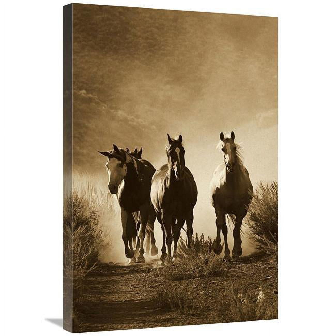 Global Gallery Horse Group of Four Approaching Camera, Oregon - Sepia-Canvas Art-20"x30"