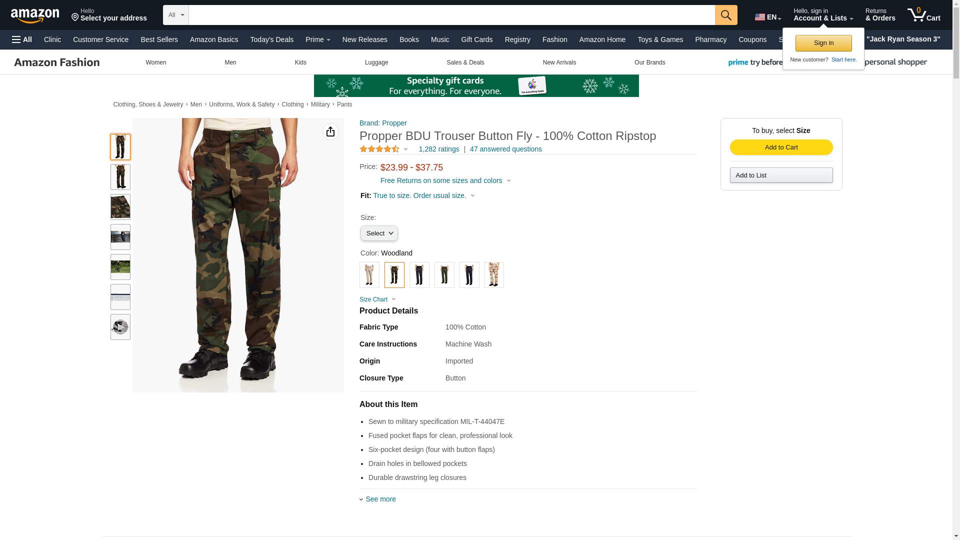 Propper F520155 BDU Woodland Button Fly Trouser Small 100 % Cotton Ripstop Woodland Short Length
