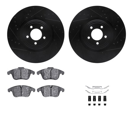 8312-20019, Rotors-Drilled, Slotted-BLK w/ 3000 Series Ceramic Brake Pads incl. Hardware, Zinc Coat