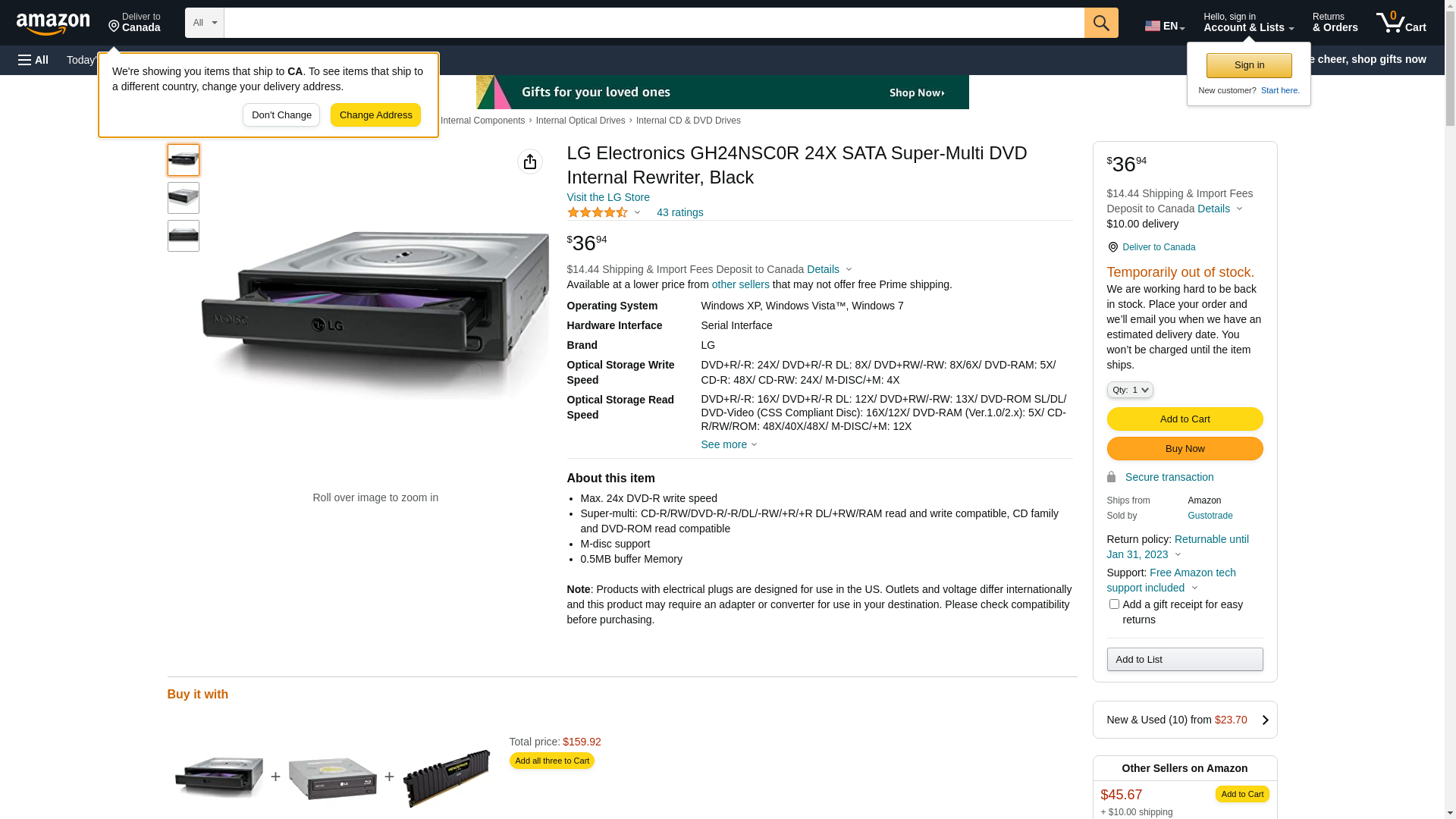 LG Electronics GH24NSC0R 24X SATA Super-Multi DVD Internal Rewriter, Black