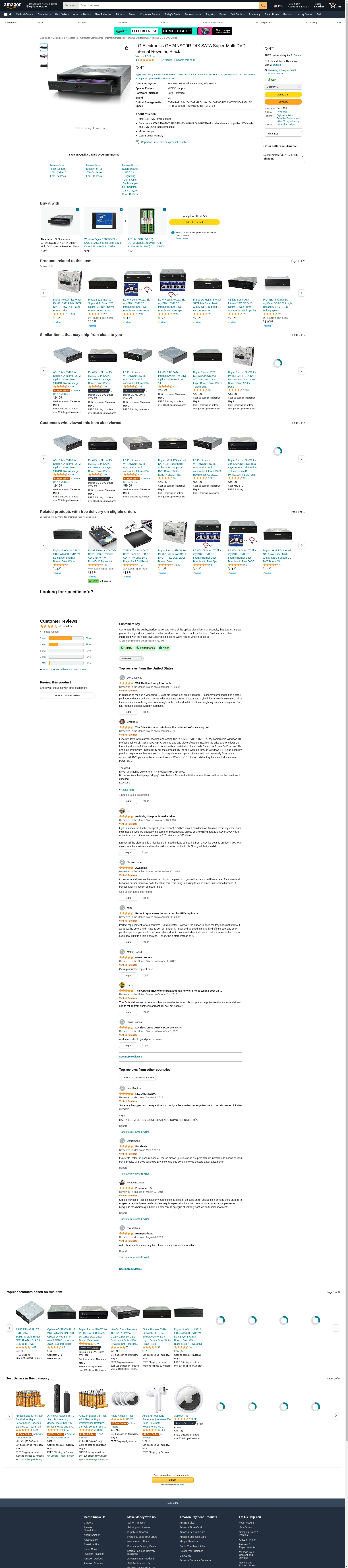 LG 24X Super Multi Mdisc DVD Internal Burner Writer GH24NSC0R Retail Box + Install Disc + Cables & Mounting Screws
