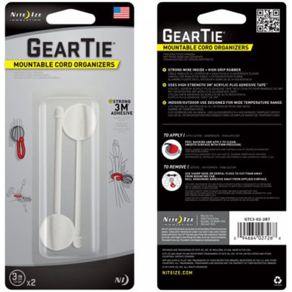 Nite Ize GTC3-02-2R7 3-Inch Gear Tie Mountable Cord Organizer, White