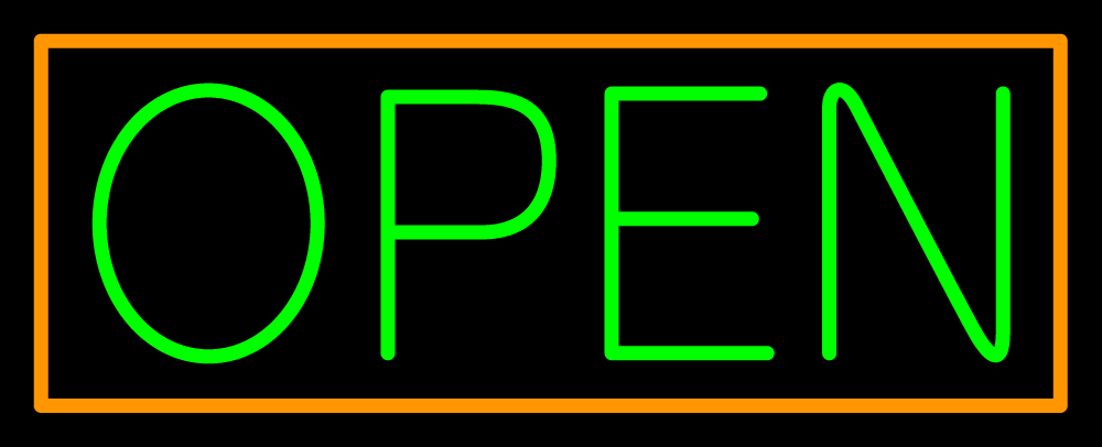 The Sign Store N100-06399 13 x 32 in. Green Open with Orange Border Neon Sign - Green & Orange
