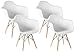 Bold Tones Mid-Century Modern Style Plastic DAW Shell Dining Arm Chair with Wooden Dowel Eiffel Legs, Set of 4 White