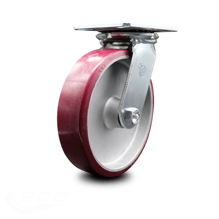 Heavy Duty Large Top Plate Polyurethane on Aluminum Swivel Caster w/8" x 2" Maroon Wheel - 1250 lbs Capacity/Caster - Service Caster Brand