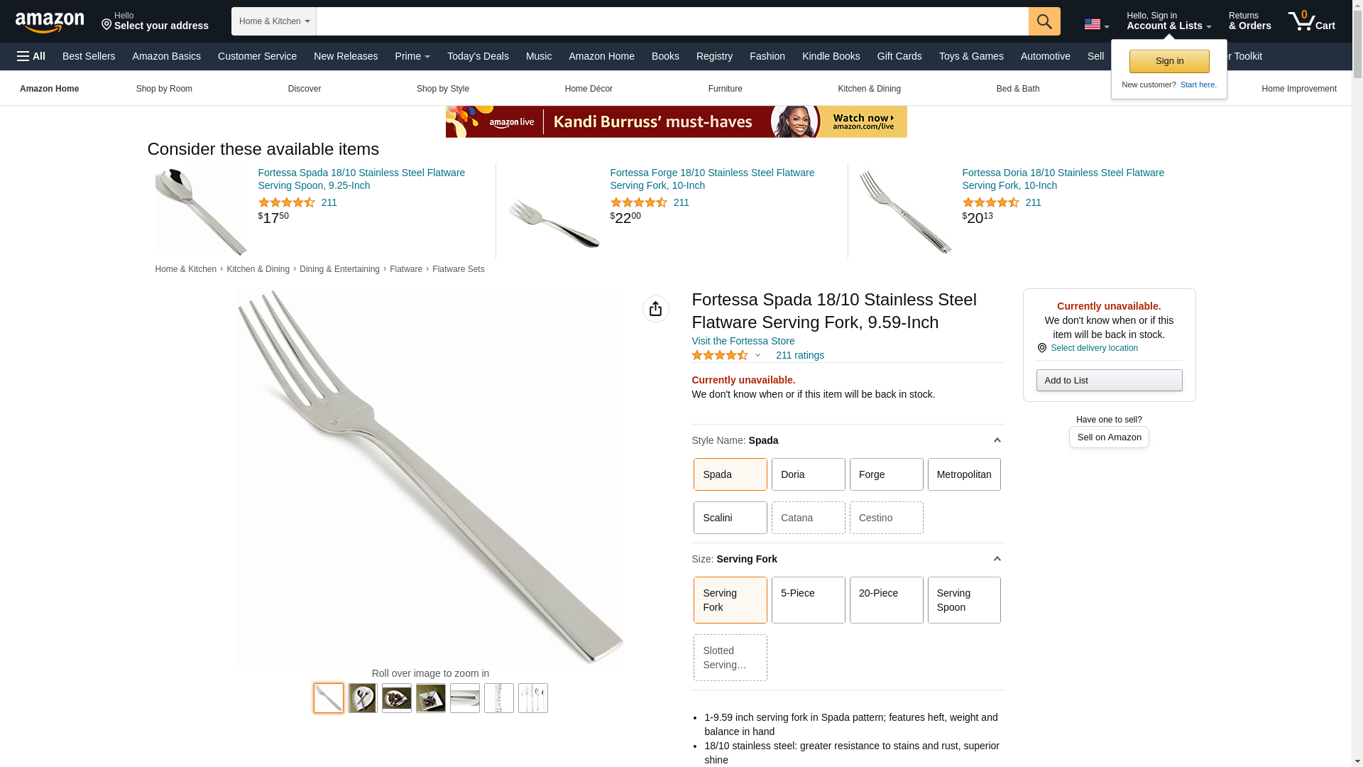 Fortessa Spada 18/10 Stainless Steel Flatware Serving Fork, 9.59-Inch
