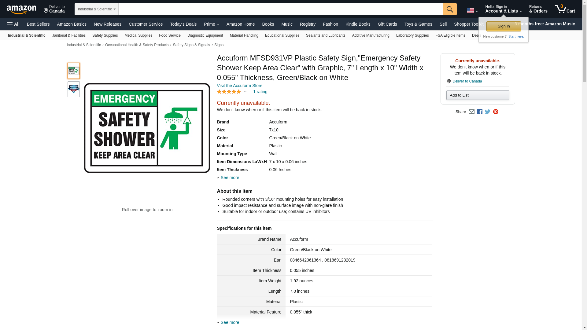 | Manufacturer | Accuform |