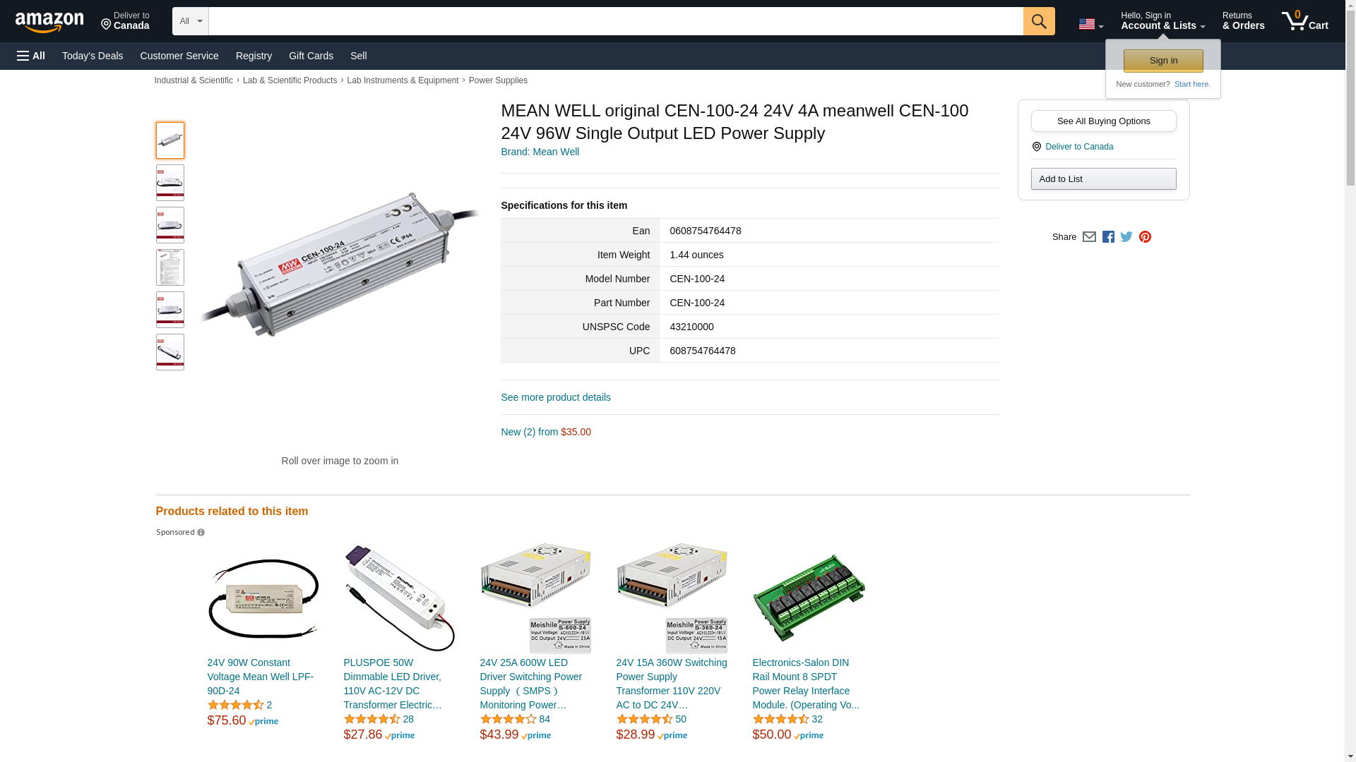 | Onlinecomponents.com | CEN-100-24 | 1 | 121 | 1 | 1 @ $62.38, 10 @ $57.63, 100 @ $54.22, 1000 @ $54.22, 10000 @ $54.22 |