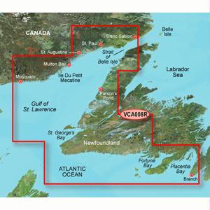 <p><b>VCA008R Covers:</b><br/><br/>Covers the western and southern coast of New Foundland from the Strait of Belle Isle to Placentia Bay, including St. George's Bay and Fortune Bay. Also covers the coasts of Quebec and Labrador from La Romaine to Red Bay.<br/><br/></p><p><b>Specifications:</b></p><ul><li>Card Format: SD</li><li>Port Plans: Yes</li><li>Aerial Photos: Yes</li><li>3-D View: Yes</li></ul>