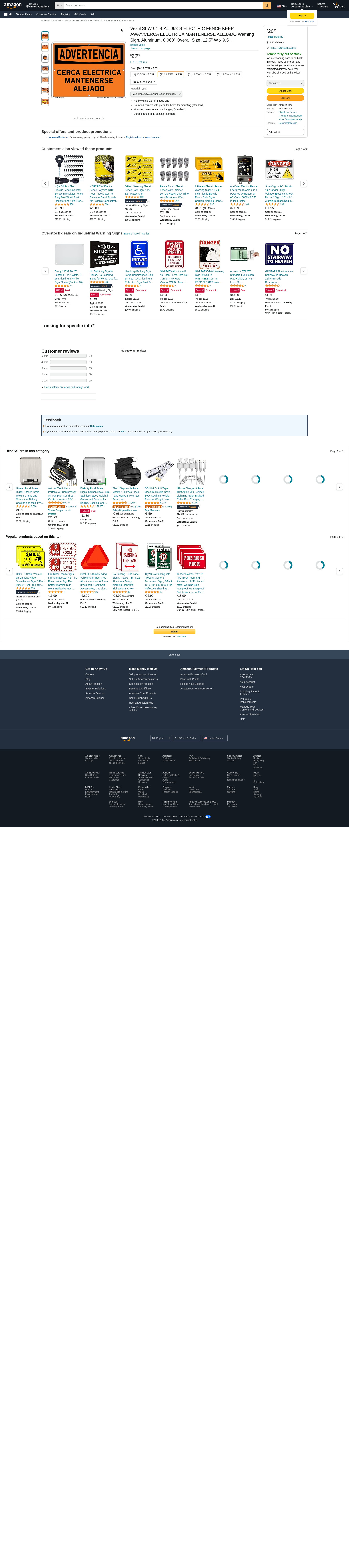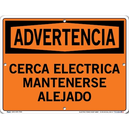 Vestil SI-W-64-B-AL-063-S ELECTRIC FENCE KEEP AWAY/CERCA ELECTRICA MANTENERSE ALEJADO Warning Sign, Aluminum, 0.063" Overall Size, 12.5" W x 9.5" H