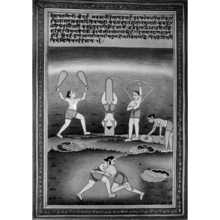 Illustration depicting female warriors exercising Poster Print