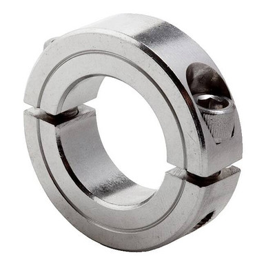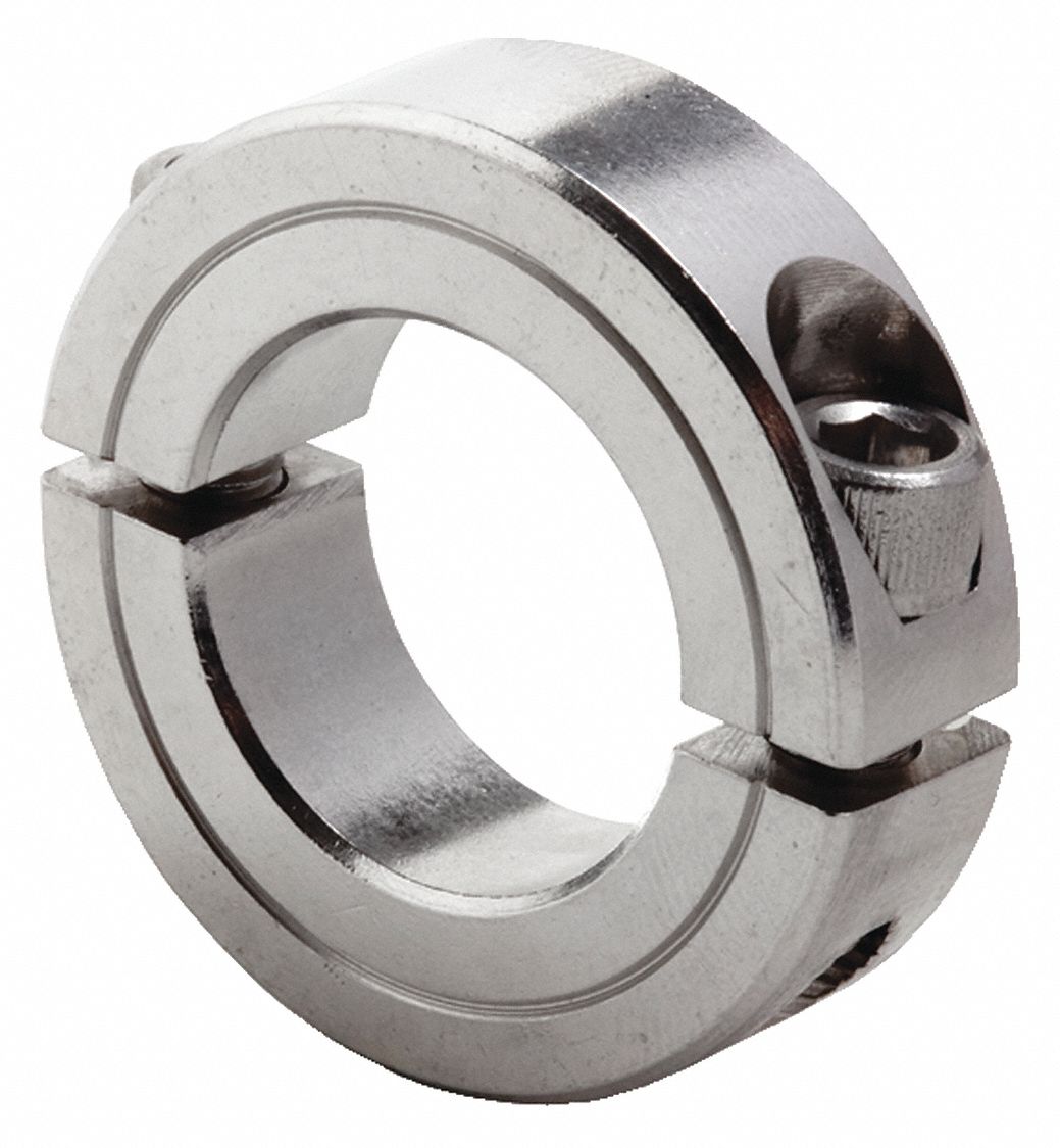 - Two-piece clamping shaft collar for applications requiring a stronger holding power and higher axial load capacity than setscrew or one-piece clamping collars