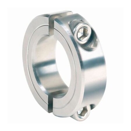 | Feature | Two-piece clamping shaft collar for applications requiring a stronger holding power and higher axial load capacity than setscrew or one-piece clamping collars |