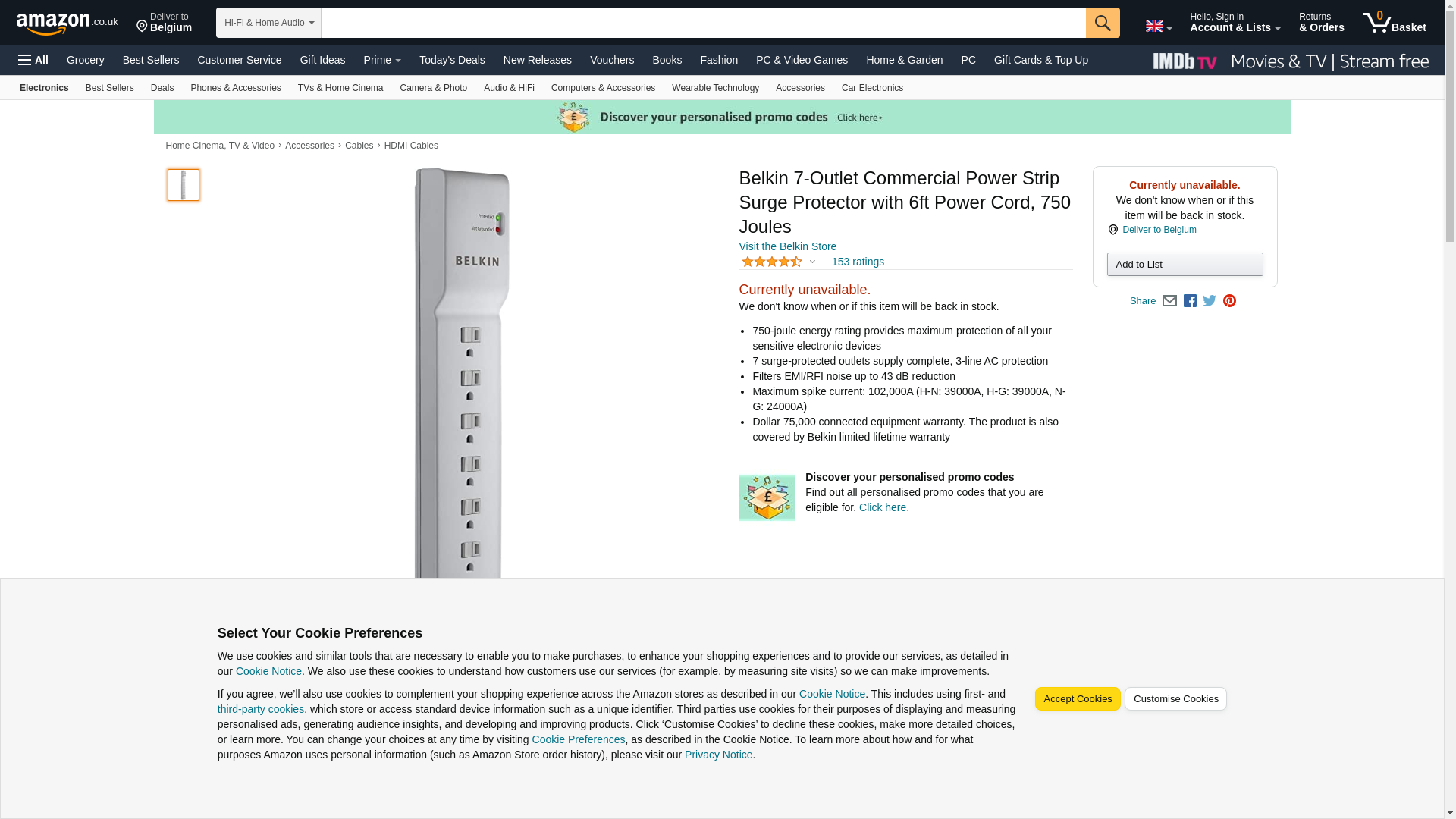| Feature | Belkin Commercial 7-Outlets Surge Suppressor - Receptacles: 7 x NEMA 5-15R - 750J |