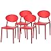 Fabulaxe Modern Plastic Outdoor Dining Chair with Open Oval Back Design, Red Set of 4
