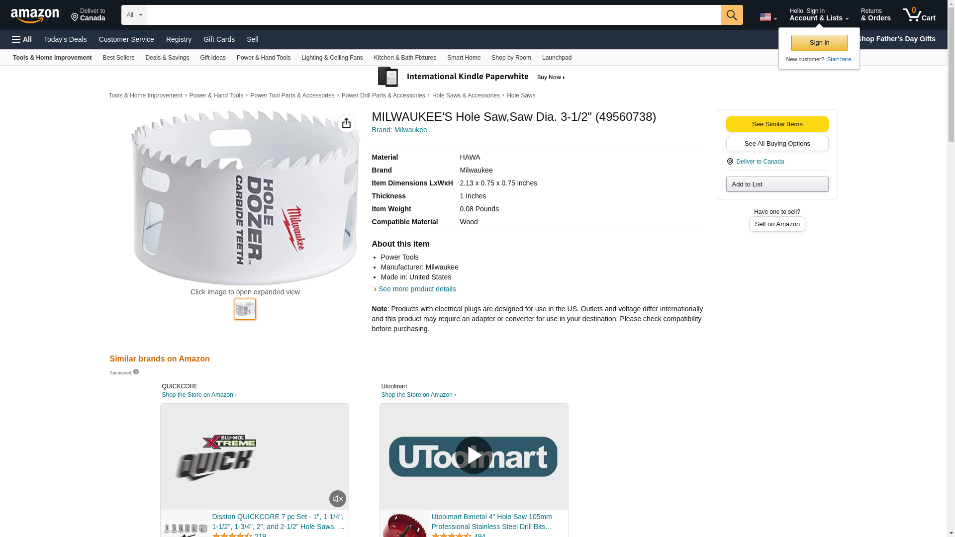MILWAUKEE'S Hole Saw,Saw Dia. 3-1/2" (49560738)