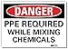 Danger Sign, Vertical Rectangle, Number of Printed Sides 1, English, Sign Format Traditional OSHA, Sign Legend PPE Required While Mixing Chemicals, Sign Legend Background Color White, Sign Legend Style Text
