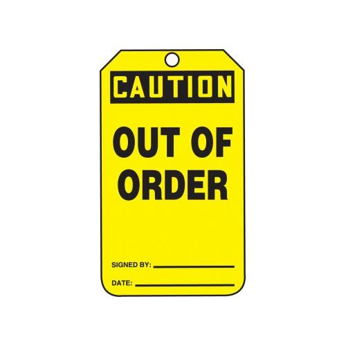 OSHA Caution Safety Tag: Out Of Order - Jumbo Standard Back B 8 1/2" x 3 7/8" PF-Cardstock 5/Pack - MDT686CTM - Jendco Safety Supply