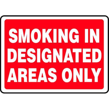 Accuform MSMK911VA Aluminum Sign, Legend "Smoking in Designated Areas ONLY", 10" Length x 14" Width, White on Red
