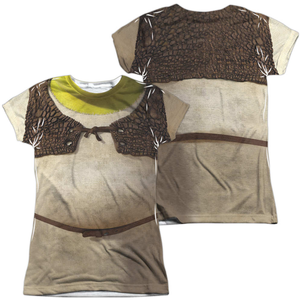 Trevco DRM177FB-JSPP-4 Shrek & Costume Front & Back Print Junior Cap Polyster Crew Neck Short Sleeve T-Shirt, White