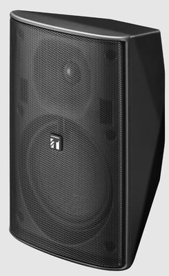 TOA F-1300BTWP Weather-Resistant Surface Wide-Dispersion Two-way Speaker System, Black, 30W Rated Power, 110º Horizontal x 100º Vertical Wide Directivity High-frequency Horn<br><br> The F-1300 Series Speaker are compact two-way speaker systems designed for high efficiency, wide range, and high power input handling capability. These speaker systems can be installed in a manner ideal for the location and intended application. The F-1300BTWP features a water-proof design (splash-proof type meeting IPX4 standard), so that it can be permanently installed outdoors.<br><br> Key Features<br> - 110º horizontal x 100º vertical wide directivity high-frequency horn<br> - Supplied bracket permits mounting to a wall, ceiling, or an optional speaker stand<br> - Combined use of the supplied bracket and optional mounting bracket allows the speakers to be mounted in many different applications, including pole mounting, clusters, horizontal ceiling mounting, and partition board mounting<br> - Waterproof design (IPX4 standard) for protection from any adverse effects of outdoor installations<br> - Rear-mounted rotary switch allows for speaker impedance selection of low impedance or high impedance<br><br> Specifications<br> - Enclosure: Bass-reflex type<br> - Rated Input: 30W (high impedance)<br> - Power Handling Capacity: Continuous pink noise: 50W (low impedance)/Continuous program: 150W (low impedance)<br> - Rated Impedance: 100V line: 330 Ω (30W), 1 kΩ (10W), 3.3 kΩ (3W), 10 kΩ (1W)/70V line: 170 Ω (30W), 330 Ω (15W), 1 kΩ (5W), 3.3 kΩ (1.5W), 10 kΩ (0.5W)<br> - Sensitivity: 90dB (1W, 1m) at installation in 1/2 free sound field<br> - Frequency Response: 80Hz - 20kHz, -10dB at installation in 1/2 free sound field<br> - Crossover Frequency: 2kHz<br> - Speaker Component: Low frequency: 13cm (5") cone-type/High frequency: 25mm (1") dome tweeter<br> - Input Terminal: Push-in terminal<br> - Dimensions: 6.38" x 9.84" x 6.34"<br> - Weight: 7.94 lb (including the supplied brackets)<br><br>