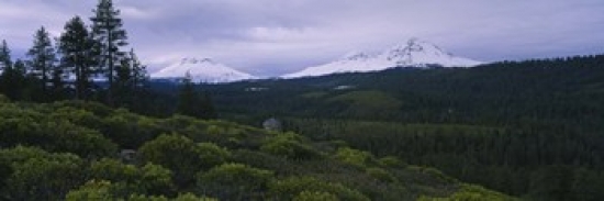 Panoramic Images PPI99551L Manzanita trees in a forest with mountains Three Sisters Cascade Range Deschutes National
