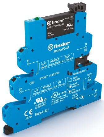 Finder Ssr-Masterplus, Spst-No 6A, 125V Ac/dc Input, 1.5 - 24 V Dc Output, Push-In Terminal Socket Rohs Compliant: Yes - 39.60.0.125.9024